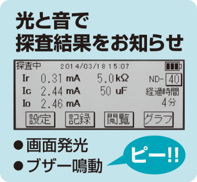 - ・地絡探査時のデータは装置本体への記録、パソコンへ転送できます。